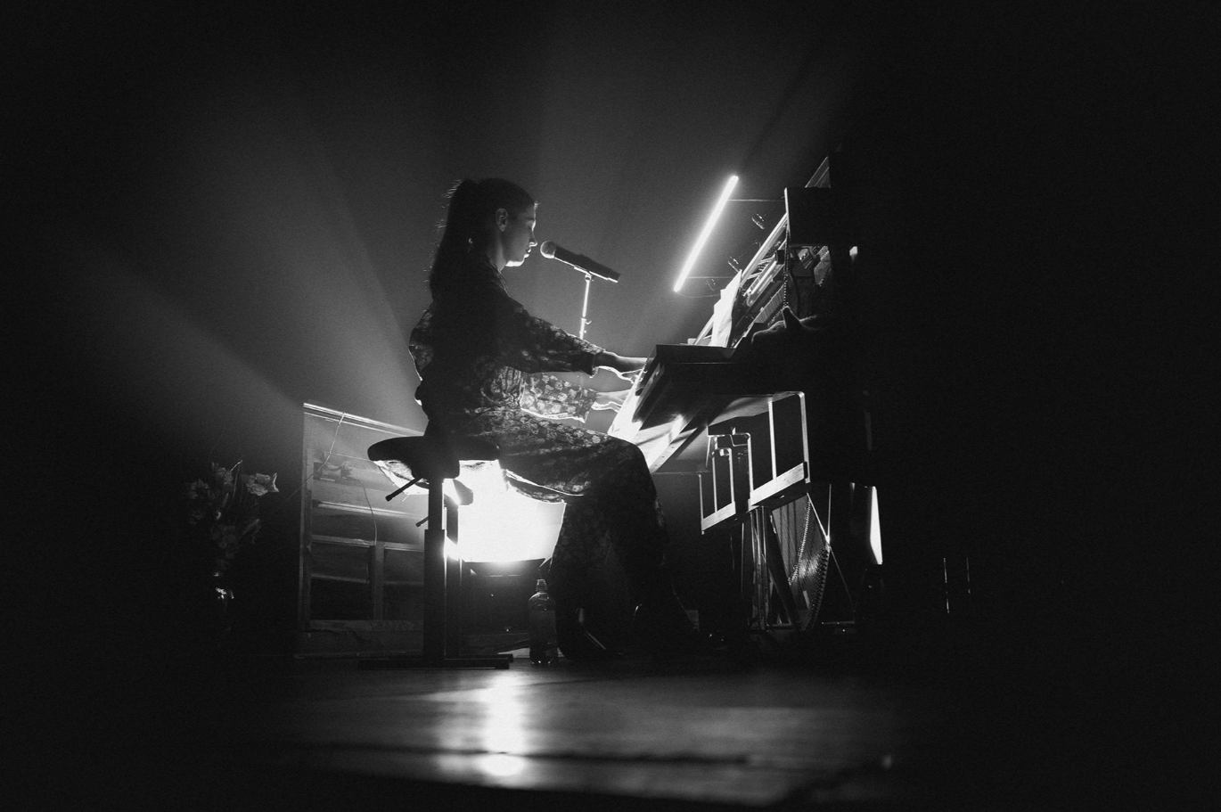 Outstanding war auch das Setup der MusikerInnen auf der Bühne, neben Anja Plaschg am Piano wurde die Performance von einem Ensemble aus Streichern und Bläsern komplettiert.